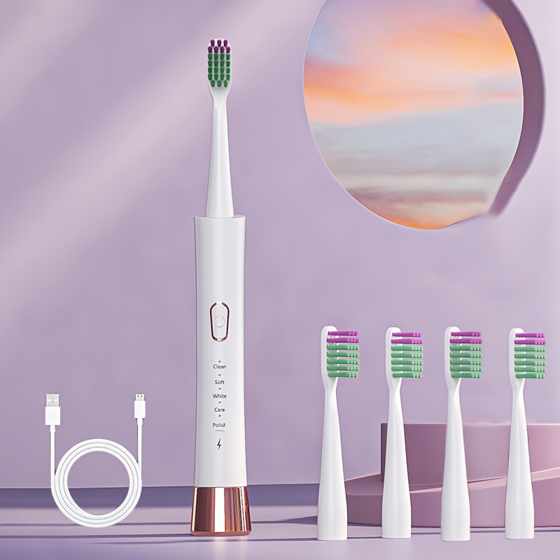 This Electric Toothbrush Boasts a Sleek Design And High Performance, Featuring Five Modes for Oral Hygiene. It Has a Concealed Charging Feature And Comes in a Pink And White Color Scheme. This Rechargeable Automatic Toothbrush Is Suitable for Both M