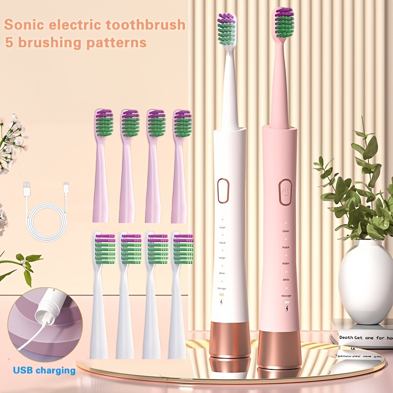 • This Electric Toothbrush Boasts a Sleek Design And High Performance, Featuring Five Modes for Oral Hygiene. It Has a Concealed Charging Feature And Comes in a Pink And White Color Scheme. This Rechargeable Automatic Toothbrush Is Suitable for Both M
